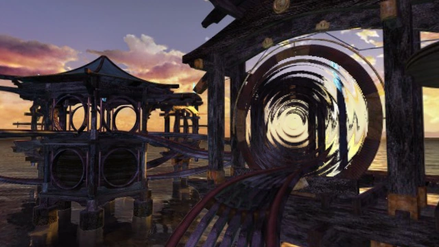 A big pagoda in the center of the Age with 7 doorways and tracks; one set beginning under its top, another running into its doorways. The cupola-like top levitates into the air and spawns an ice sphere out of thin air with a Water Lathe.