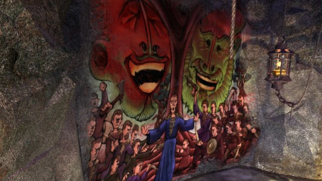 A circular atreum at the eastern end of the basalt tunnel. Saavedro has painted a mural with monstrous, laughing images of Sirrus and Achenar above the Narayan civil war, with Saavedro in the middle of the conflict. On the way to the Resonance Ring there is a series of crumbling basalt columns resembling the skeleton of a whale.