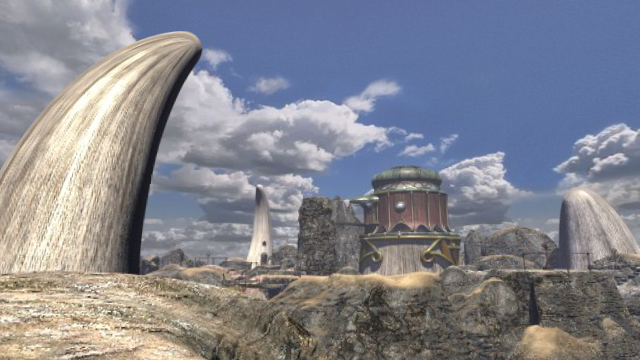 A 2-story structure build inside and on top of the gigantic tusk in the center of the island. It has two entry points and its top is accessed with an elevator. The Observatory room has 3 telescopes in view of the 3 other tusks, with mechanisms that help gaining access in them. There is an Imager with Atrus' instructions to his sons. An imaging table receives symbol sketches, projects the sketch downward, raising a 3d representation from a cam below, while another cam with an elastic surface drops to imprint the shape. The combinations manipulating a mechanism that opens the linking book to Narayan. Saavedro changed the scanning codes and also overwritten Atrus' messages with his own and dropped a (very bitter) excerpt from his journal for Atrus.