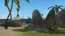 Laki'ahn was named after the white, shark-like fish living in its ocean. The indigenous tribe here would hunt these creatures as a rite of passage. When a boy retrieved the large gem from the stomach, he became a man. When the D'ni entered the age they created a water coliseum and forced members of the tribe to fight these creatures for their pleasure. The tribe is believed to be extinct and the Laki can be seen in the distance refusing to come closer to the island.